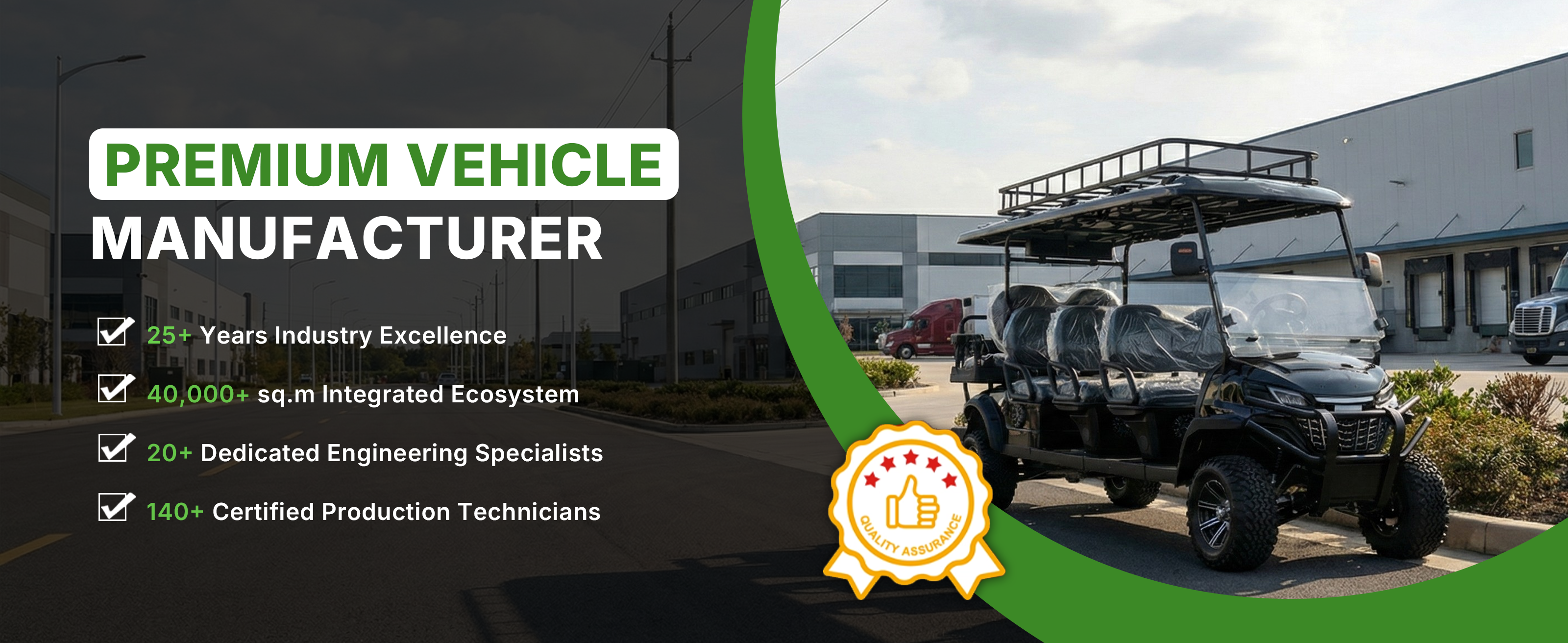 Widerway offers a comprehensive portfolio of over 120 models of low-speed electric shuttles, golf carts, and mini trucks. With over 25 years of manufacturing experience, we combine the strengths of industry leaders like E-Z-GO, Club Car, and Yamaha.