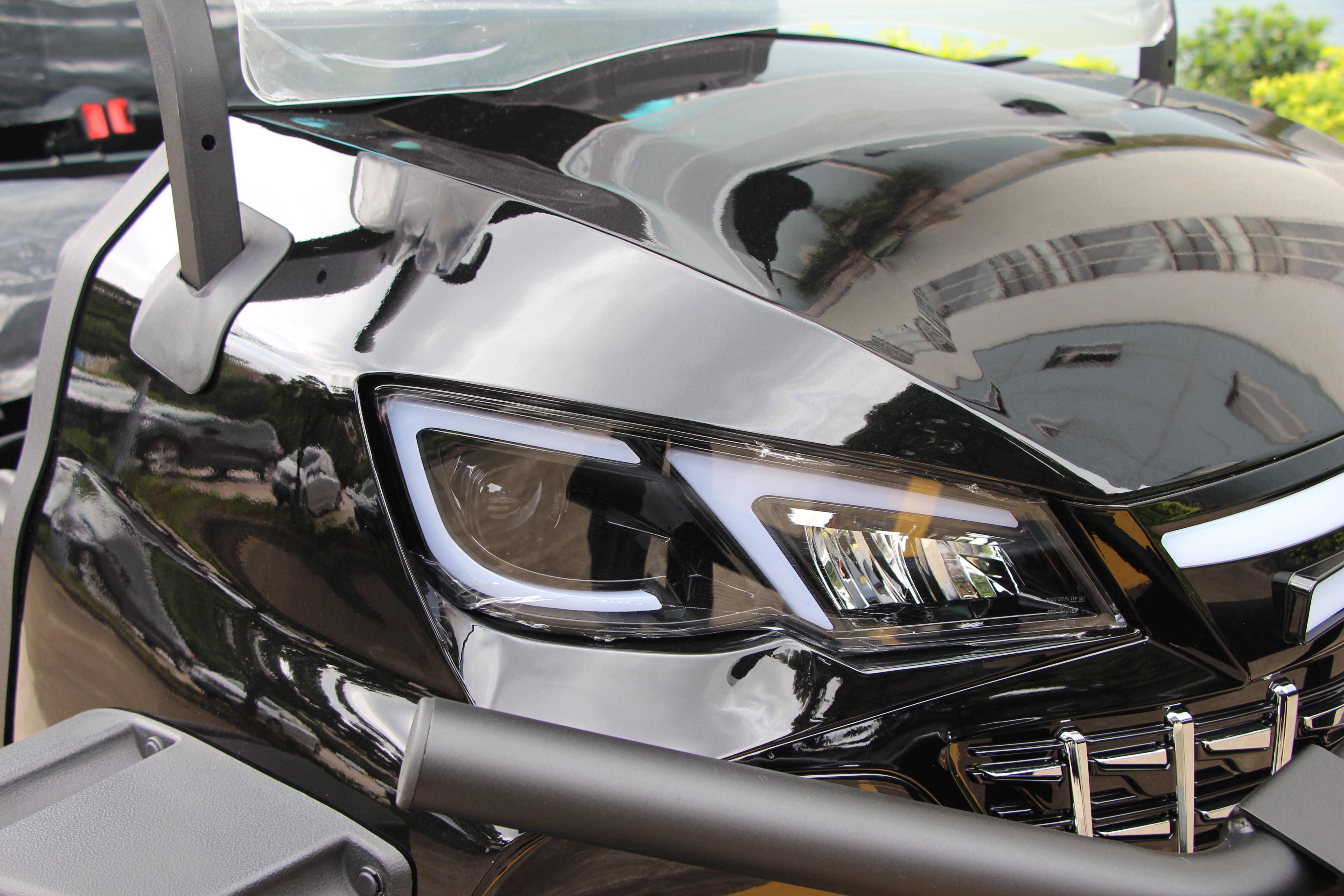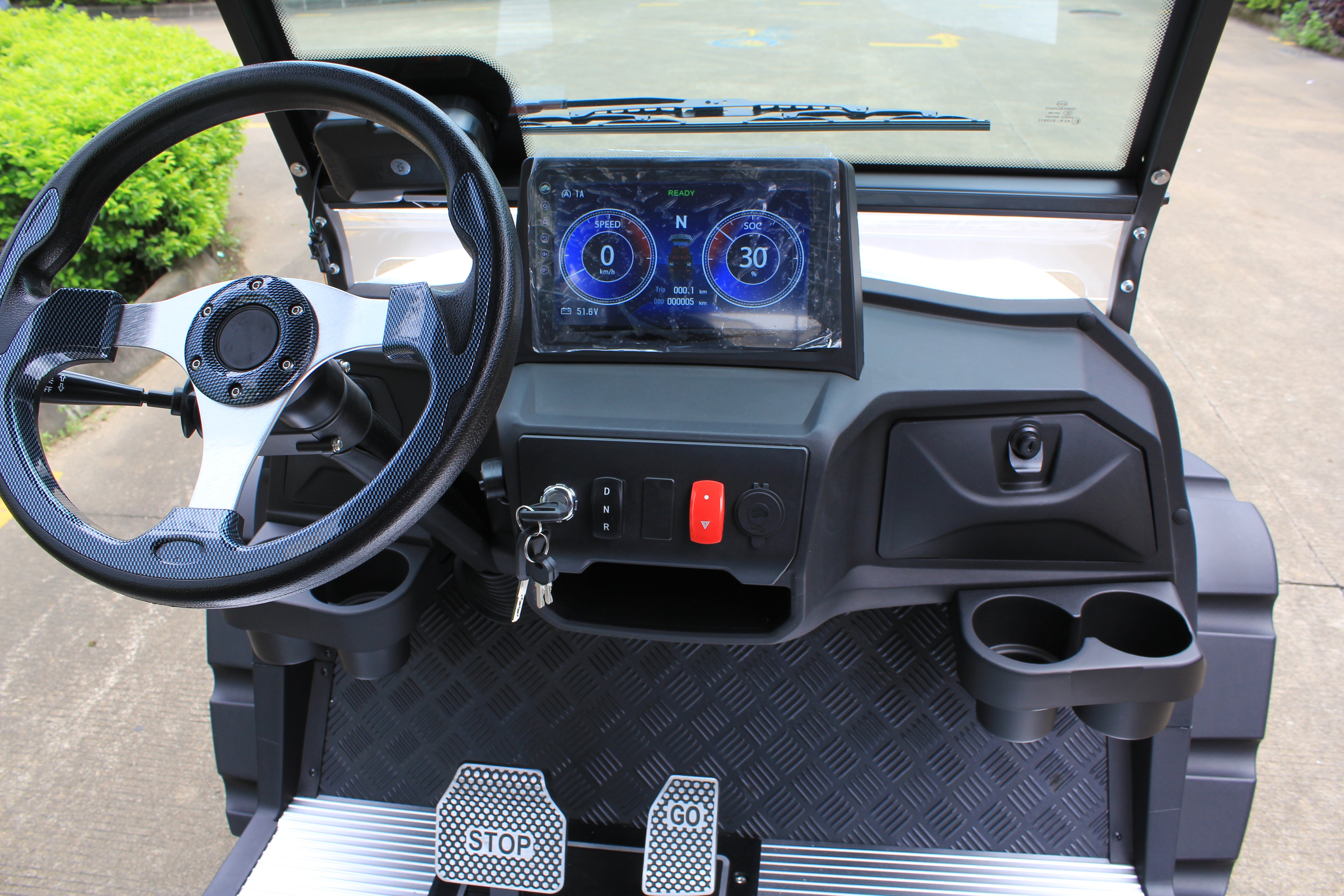 Injection moulded dashboard with electric lock switch, forward/reverse switch, alarm light switch, light signal switch, IP66 advanced multimedia 10-inch combination instrument, Bluetooth function, with vehicle detection function, USB charging port included, FM antenna, reversing camera.